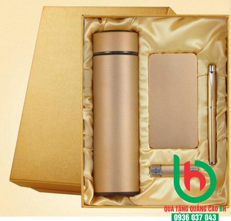 - Bộ giftset 4 sản phẩm kết hợp giữa bình giữ nhiệt, sạc dự phòng, usb và bút - Có hộp đựng sang trọng